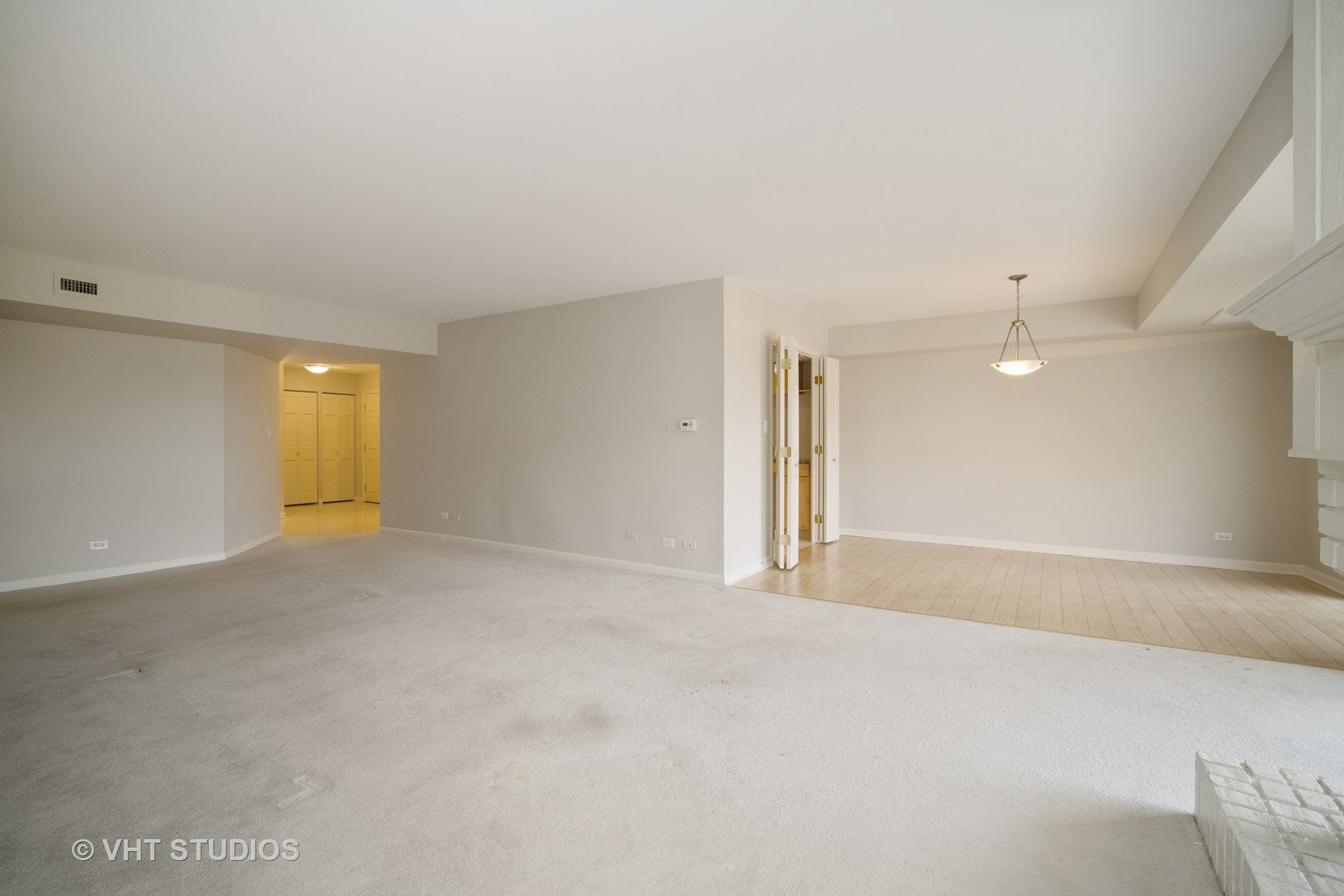 RARE CORNER 2 BED/ 2 BATH PLUS DEN END UNIT IN SOUGHT AFTER MISSION HILLS SUBDIVISION WITH AN UNBEATABLE VIEW OF THE GREENS. THIS BEAUTY JUST GOT A FACELIFT WITH OVER $12,000 IN RENOVATIONS - ENTIRE UNIT JUST PROFESSINALLY PAINTED IN A NEUTRAL PALETTE AND NEW WINDOWS SCHEDULED INSTALLATION IN NOVEMBER. THIS IS MOVE IN READY! THIRD FLOOR UNIT WITH TILED FOYER GREETS YOU ENTER INTO THE LIVING ROOM WITH CARPET AND A GORGEOUS WHITE WASHED GAS FIREPLACE FOCAL POINT. ENTERTAIN I IN YOUR DINING ROOM WITH CUSTOM PLANK FLOORING (2014) AND GORGEOUS CHANDELIER. ADJACENT KITCHEN WITH MAPLE CABINETS, TILED FLOORS, BRILLIANT GRANITE COUNTERS, NEWER REFRIGERATOR & DISHWASHER (2017), AND ELECTRIC OVEN. THIS UNIT HAS A FULL DEN OR OFFICE OR POSSIBLE THIRD BEDROOM WITH CARPET, CUSTOM COVERED BLINDS, AND STORAGE CLOSET. MASTER BEDROOM BOASTS CARPET, CUSTOM BLINDS, PRIVATE BALCONY AND HUGE WALK IN CLOSET. MASTER BATHROOM WITH WHITE CABINETS, TILED FLOORS, NICE SOAKING TUBE, SEPARATE SHOWER, MARBLE VANITY DOUBLE SINKS AND TWO MEDICINE WALL CHEST. SECOND BEDROOM WITH CARPET, CUSTOM BLINDS, AND DOUBLE CLOSET. SECOND BATHROOM FEATURES TILED FLOORING, WHITE CABINET, GRANITE VANITY SINGLE SINK WITH NEW FAUCET (2021), SHOWER/TUB COMBINATION WITH YOUR STACKABLE WASHER /DRYER FITTING RIGHT INTO THE BUILT IN AREA. OTHER HOME HIGHLIGHTS INCLUDE: A FULL LENGTH 220 SQ FT SECOND BALCONY TERRACE GREAT FOR ENTERTAINING AND ENJOYING THE OUTDOORS, CUSTOM HUNTER DOUGLAS SHADE/BLINDS THROUGHOUT UNIT, FURNACE (2005), AIR CONDITIONER (2005). GATED ENTRY WITH 24-HOUR PRIVATE SECURITY, 6 POOLS, 2 TENNIS COURTS, COUNTRY CLUB STYLE LIVING COMMUNITY. LOCATED BY 294/94 EXPRESSWAYS, SHOPPING, WALKING PATHS, AND AWARD WINNING BLUE RIBBON NORTHBROOK SCHOOLS. CALL THIS GEM HOME! (SOLD AS IS -PROPERTY MAINTAINED)