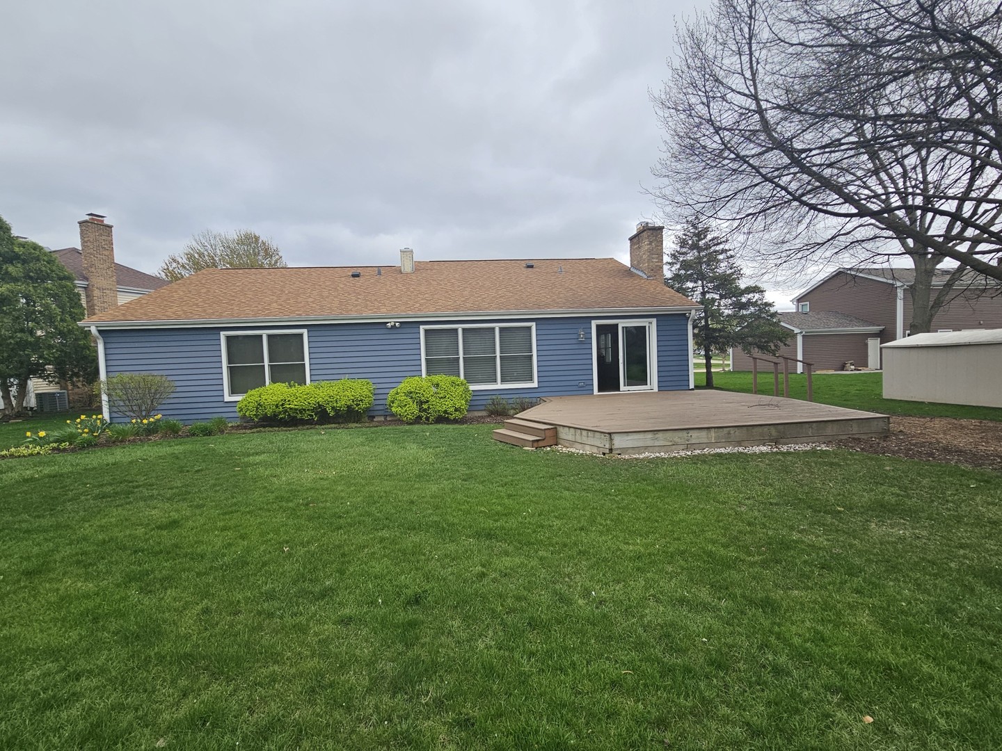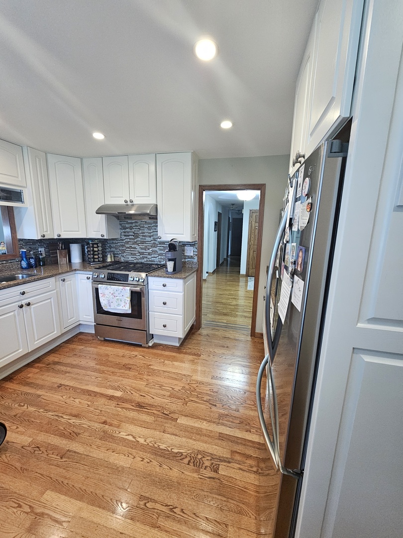 YOU JUST FOUND YOUR UNICORN! With only 4 ranch homes in this sought after Charlemagne subdivision, this beautiful 1,991 sq. ft. 4bd/2 bth RANCH with finished basement (@900 sq ft) feeding into FREMD HIGH SCHOOL is wonderfully situated on a private cul-de-sac. Step into your foyer with rich stained oak floors that leads to your large living room complete with Newer fan/light, Hunter Douglas custom blinds (2017) and carpeted flooring. Adjacent dining room is perfect for those holiday parties with Hunter Douglas custom blinds, chair rail molding, modern light fixture, and carpeted flooring. Kitchen boasts white oak cabinets, quartz counters, glass tile backsplash, Stainless steel appliances: Refrigerator 2022, Dishwasher 2022, Gas range 2020, pantry closet, and hardwood floors. Family room features hardwood flooring, a gorgeous gas start fireplace with custom cut natural shaped lacquered Juniper wood mantle and hearth from Africa, Crown molding, recessed lighting, and fan/light fixture. Updated first floor laundry room 2024 features hardwood floors, LG washer/dryer 2021, separate counter and cabinet space, and a sink. Primary suite boasts carpeted floors, large walk in closet, fan/light fixture, blinds, plus a private primary bathroom featuring ceramic tiled floors, stunning quartz vanity, rich maple cabinets, double sinks, and an exquisitely tiled walk in shower (newly grouted 2023). Bedrooms 2,3, & 4 all boast carpeted floors, sliding closets, fan/light fixtures, and blinds. Second bathroom features tiled floors, Corian all in one piece mounted vanity, white cabinets, and shower/tub combination. Open hardwood staircase leads you to your full basement boasting a finished area with vinyl flooring, gas start brick fireplace, recessed lighting for extra entertaining plus an entire unfinished area offering more storage and bathroom rough in. Full crawl space is sealed with a plastic liner and also offers more storage. Step outside to your gorgeous backyard with a Trex Deck 2021, and beautiful landscaping all around the house that is perfect for throwing those outdoor barbecues! Other home highlights include: Leaf Filter gutters 2023, Pella Windows 2022, Driveway sealed 2022, Duct cleaning 2022, Roman blinds 2022, Hot Water heater 2021 (with 5 year warranty), Roof 2016, Furnace with humidifier/ Air Conditioner 2015, 2 sump pumps 2017 with back up battery. Call this GEM, HOME! (Because this home is so meticulously maintained, it is being offered AS IS)