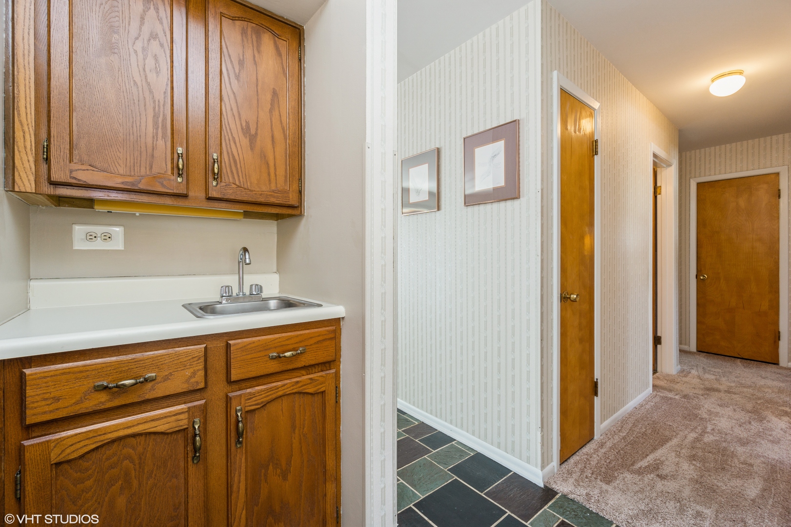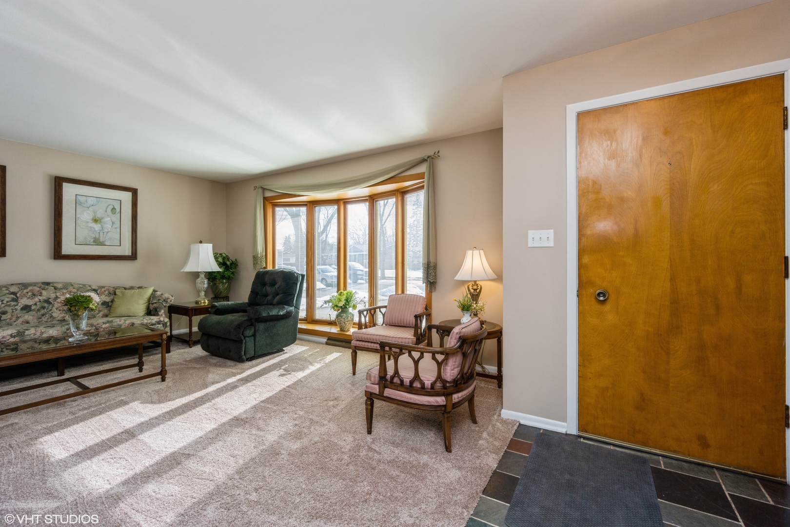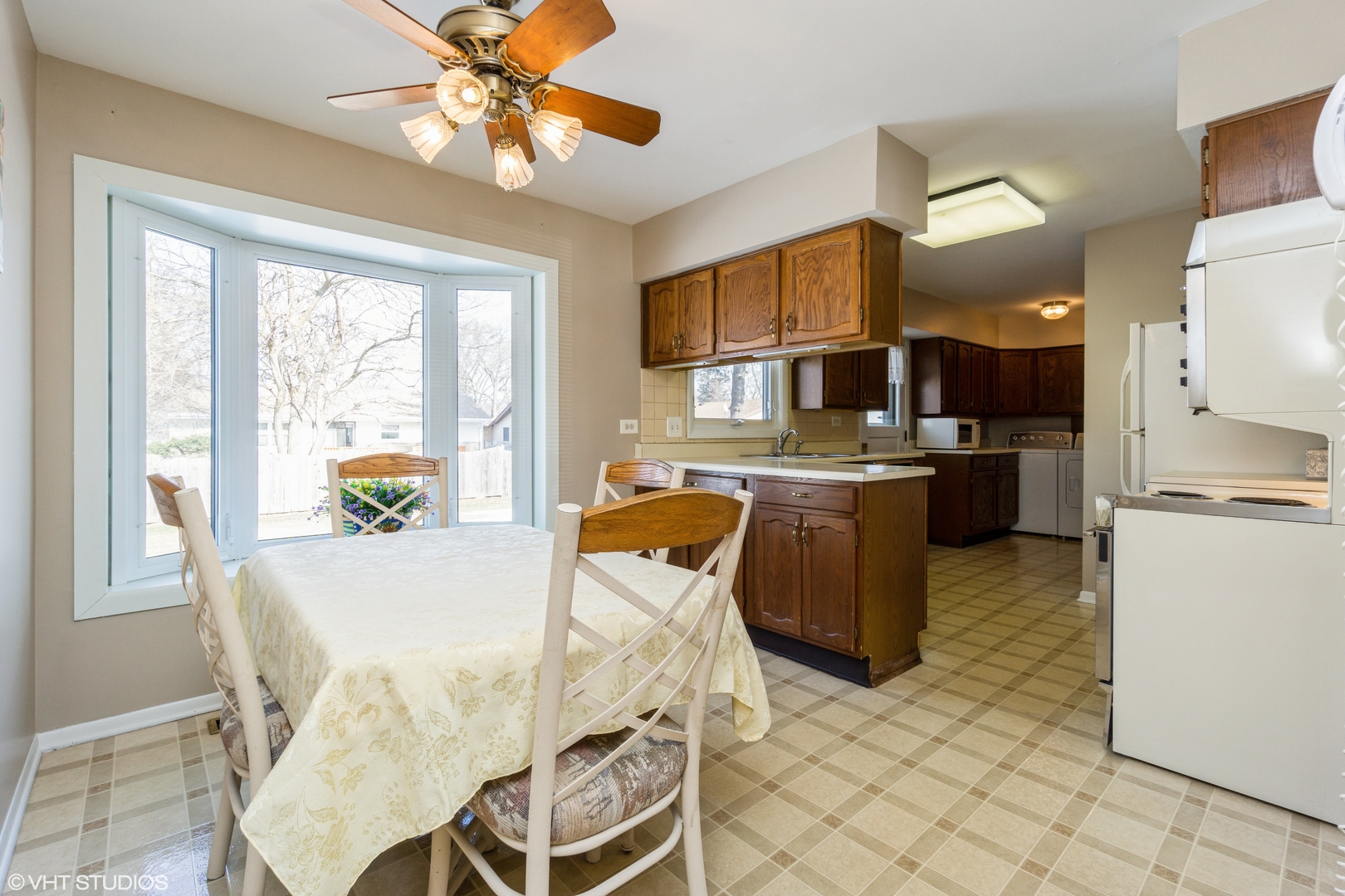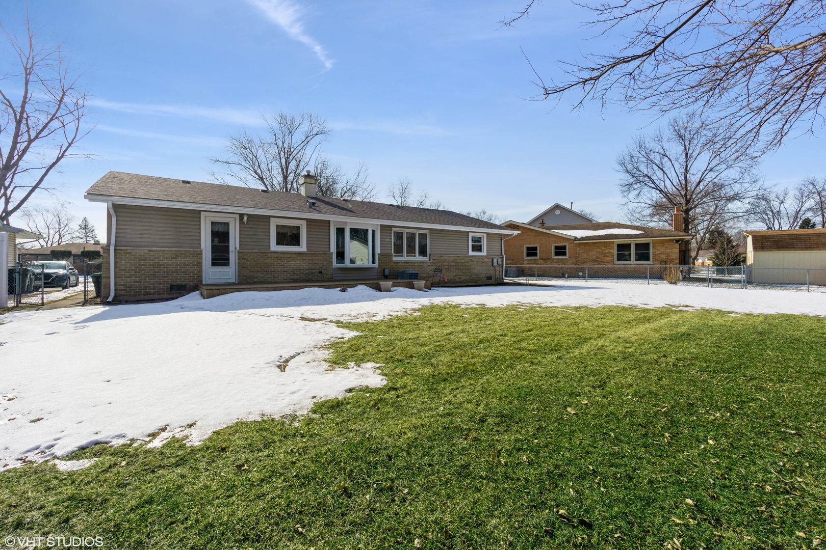 PLC on this GEM of a home! Price- Location- Condition! RARE 3bd/ 1 1/2bth RANCH and just under 1300 sq. ft. in desirable Elk Grove Village subdivision A beautiful slate Foyer greets you as you enter with a generous coat closet - great for storage. Living room with NEWER plush carpeting (2020) and ceiling to floor windows with built in blinds inside the glass allows for great natural light. The Spacious kitchen features a large eat-in area, oak cabinets, maintenance free Formica counters, fan/light fixture, vinyl flooring and a butler's pantry great for entertaining and counter space. Laundry is tucked away in a kitchen cove for convenience (Washer/ Dryer 2019). NEWER plush carpeting in the hallway (2020) leads you to your bedrooms. Master bedroom boasts newly refreshed parquet floors, fan/ light, a generous closet and a private entrance to the half bath that features a pedestal sink, tiled walls & flooring. Connected full bath boasts a pedestal sink, and tiled walls & flooring. Second bedroom with NEWER plush carpeting (2020) is a generous size with closet and 3 paneled windows with built in blinds in the glass. Third bedroom features refreshed parquet floors and a closet. Step outside to your huge backyard complete with a deck that is wonderful for entertaining family & friends, plus a NEW white side fence for privacy (2022).Other home updates include: NEW Roof (complete tear off 2022); NEW Siding (2022), NEWLY painted (2020); Hot water heater (2015); Furnace/ Air conditioner (2012 with yearly contract for maintenance); Windows (2015). Close to shopping, award winning schools, and freeways- This Is Home!! Property is meticulously maintained and is being SOLD AS